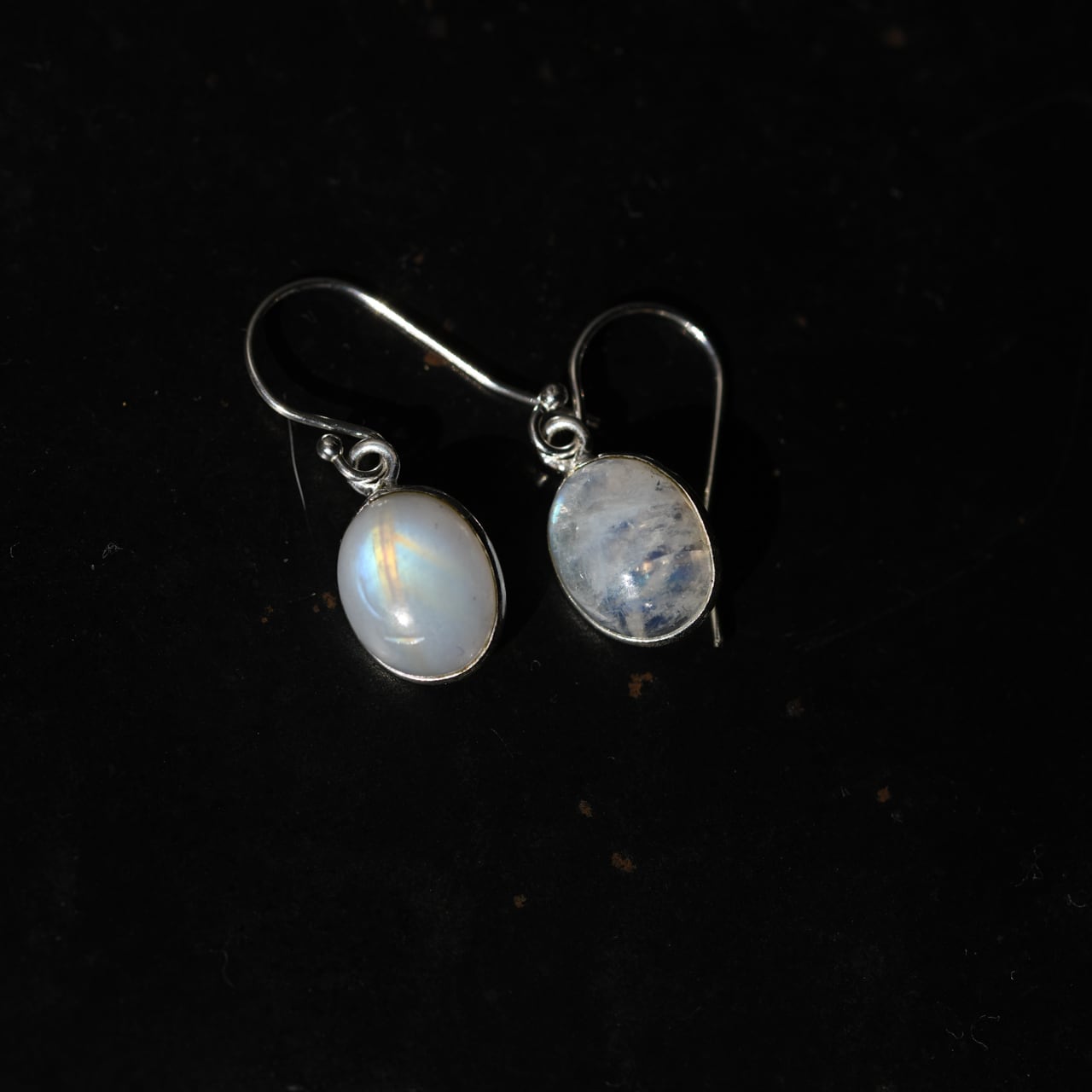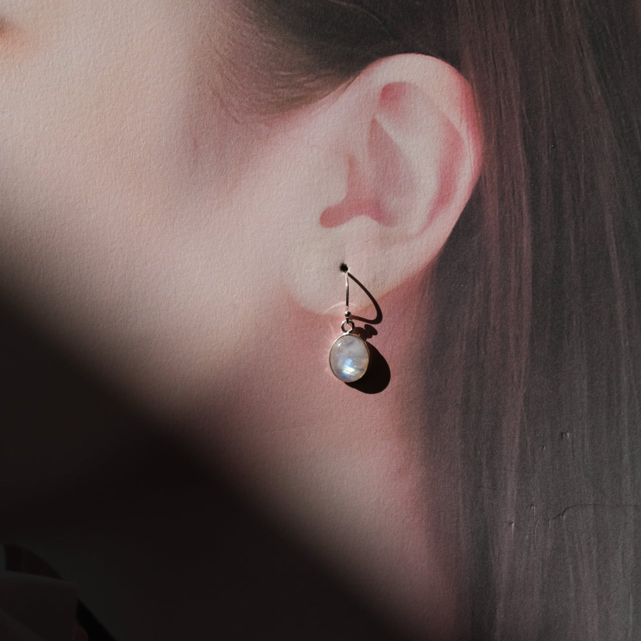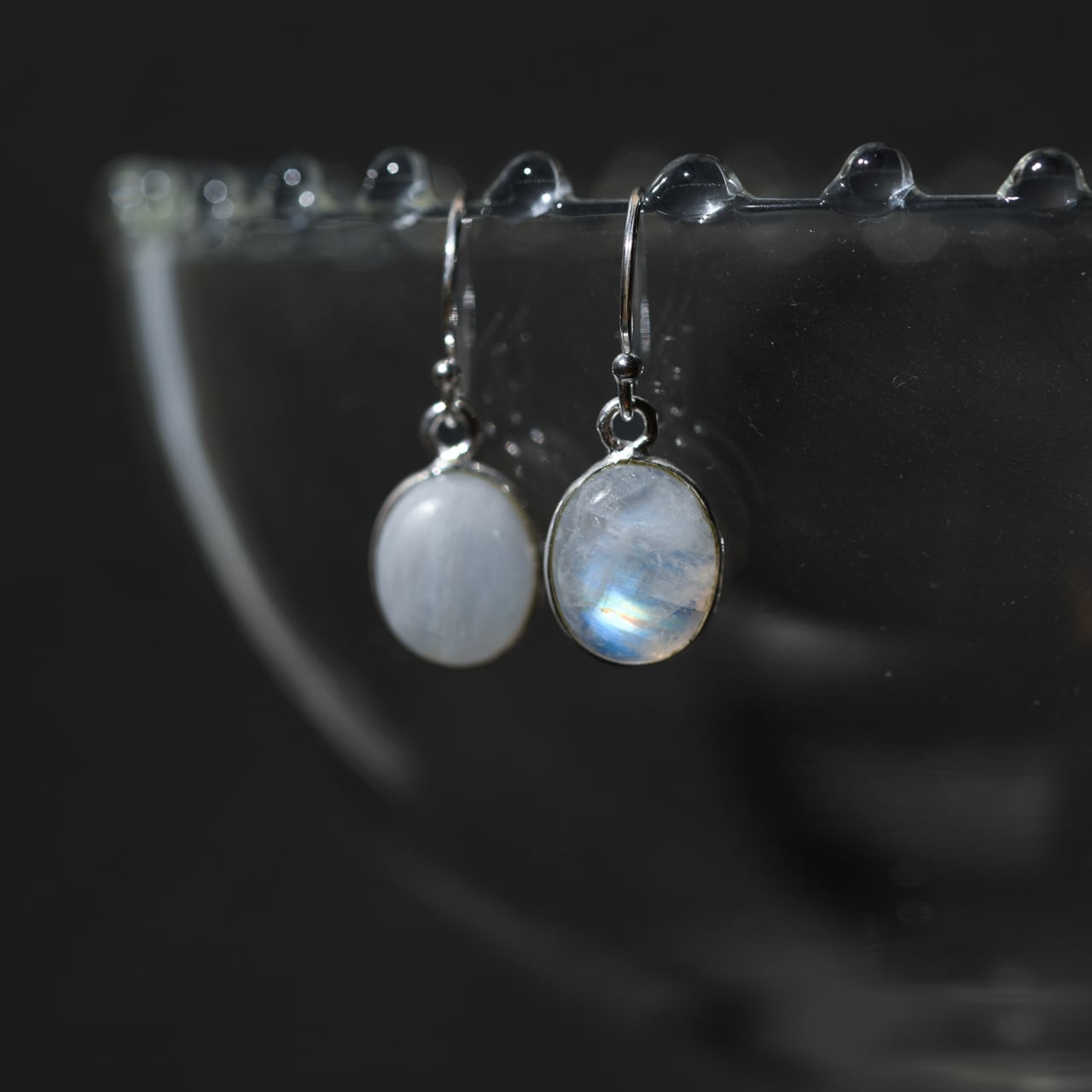 やわらかな月の光を閉じ込めたように幻想的に輝く、ムーンストーンの耳飾りです。