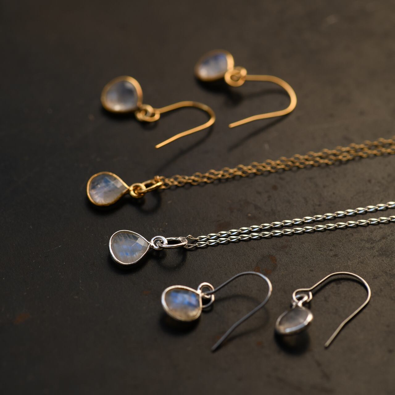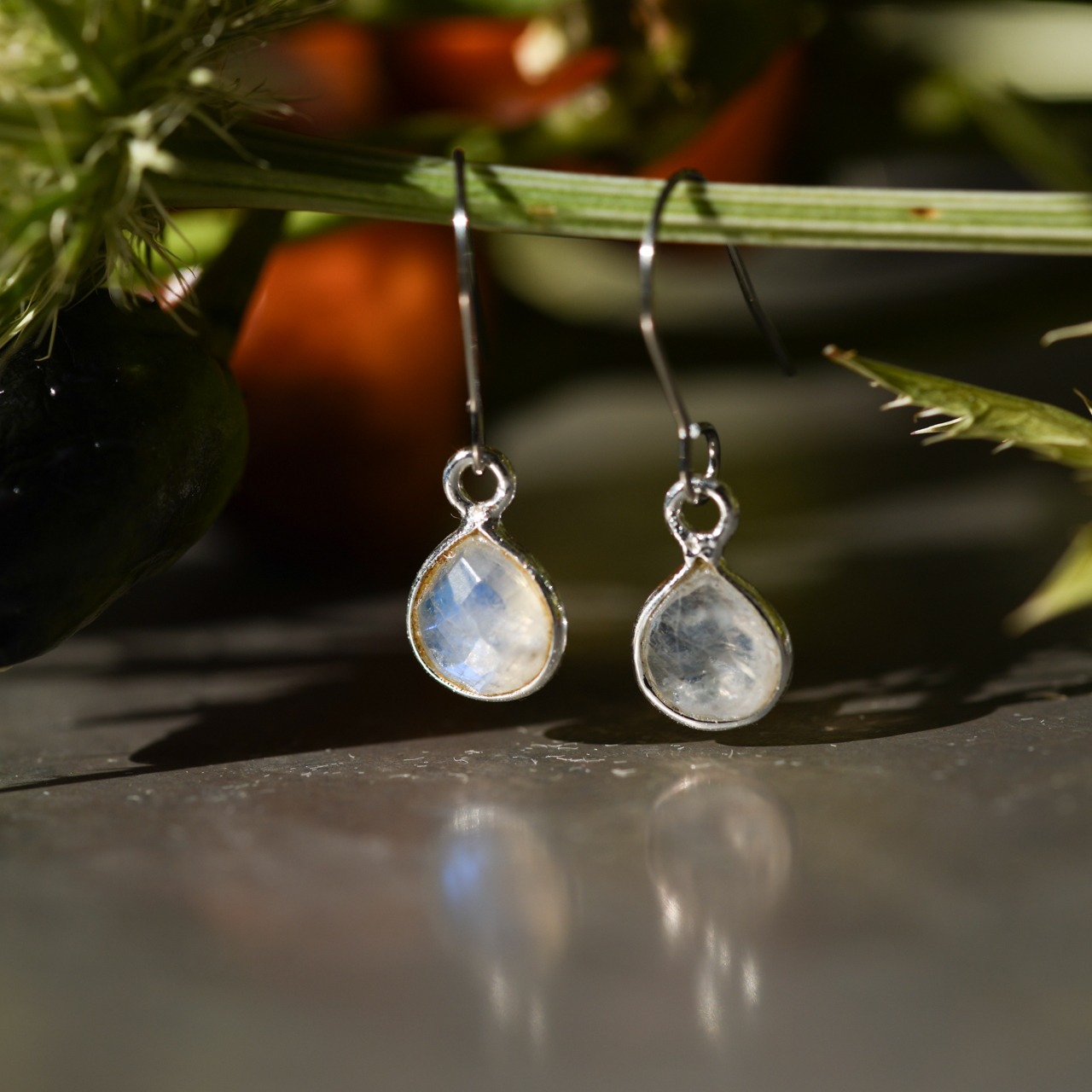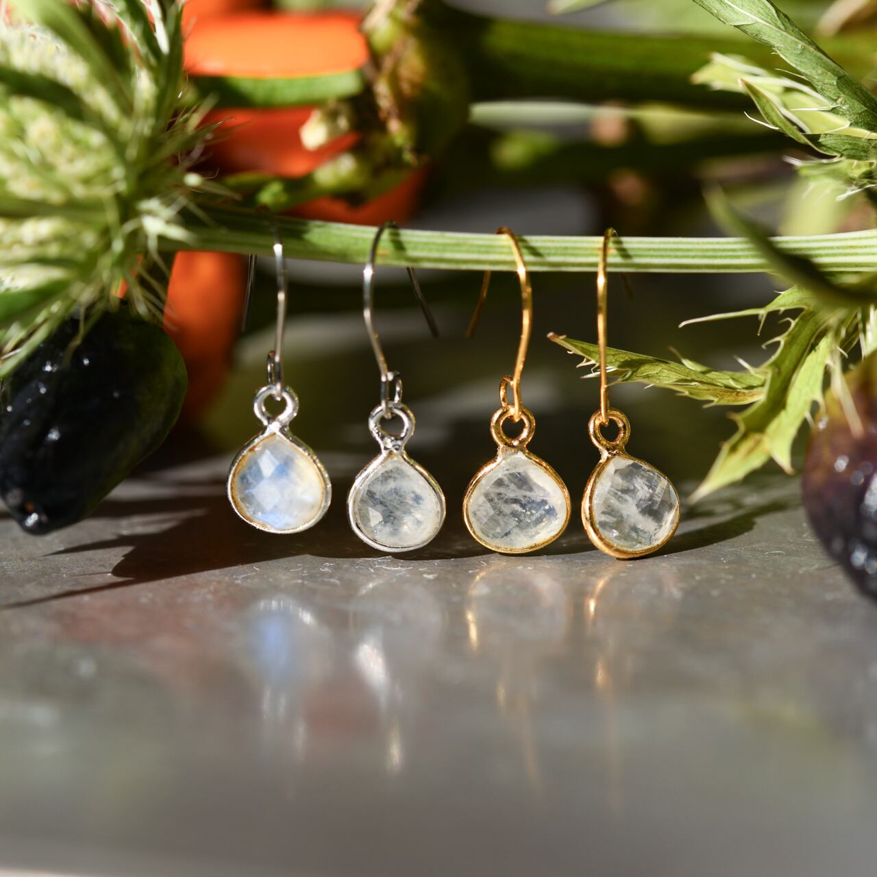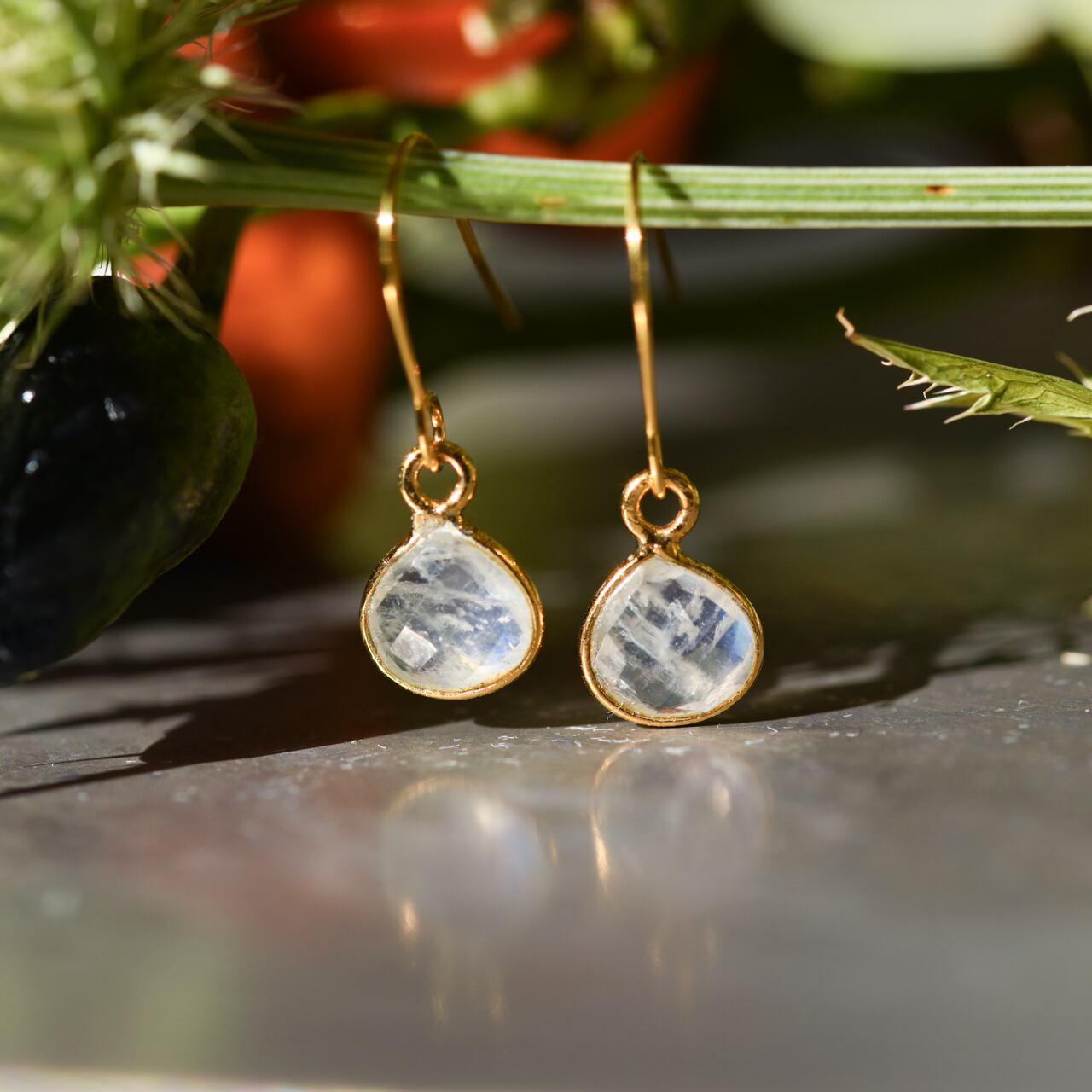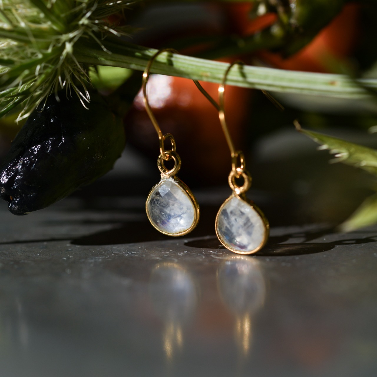 やわらかい光を内に含む ムーンストーンのピアス/イヤリング。