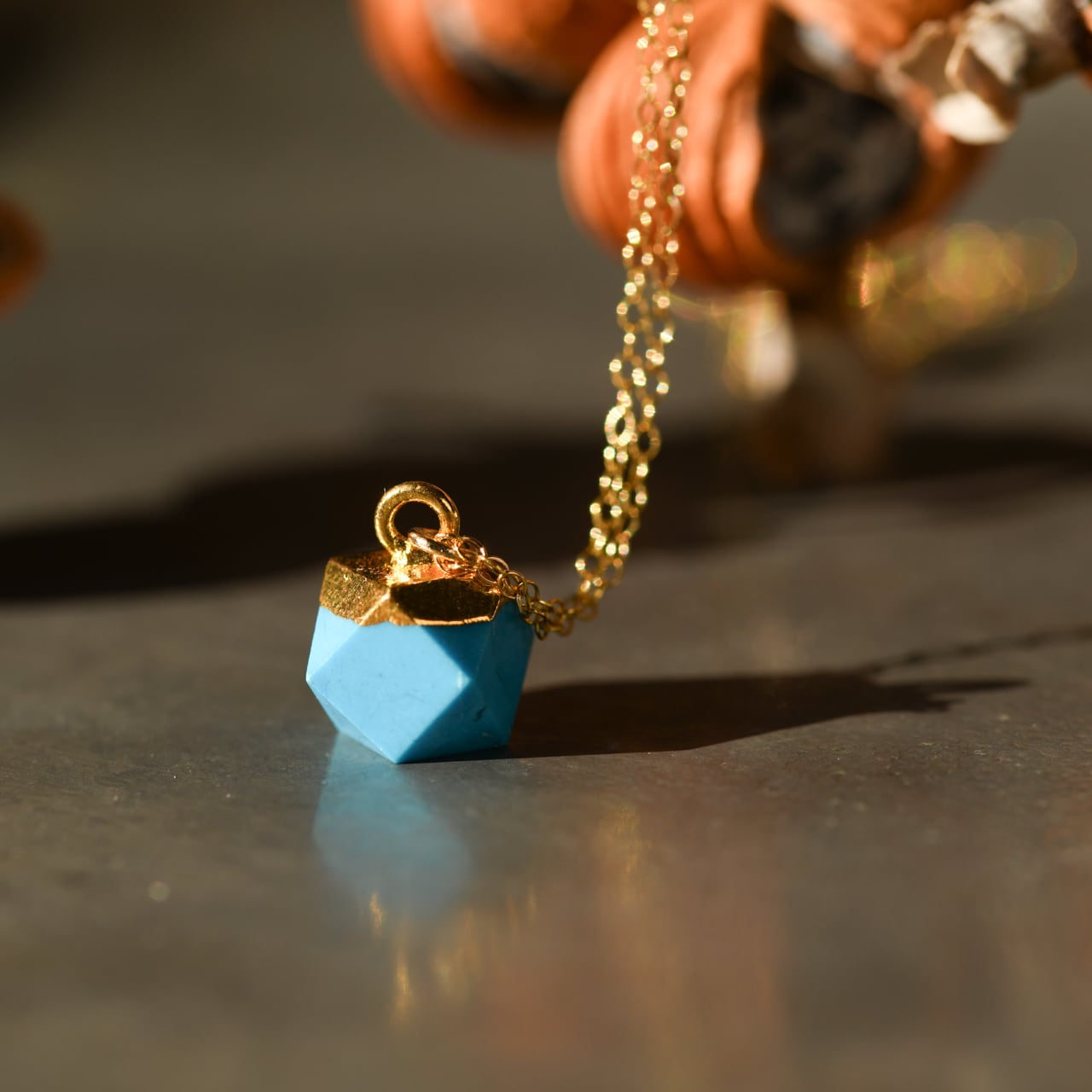 六角形のフォルムが印象的な ターコイズのネックレス。